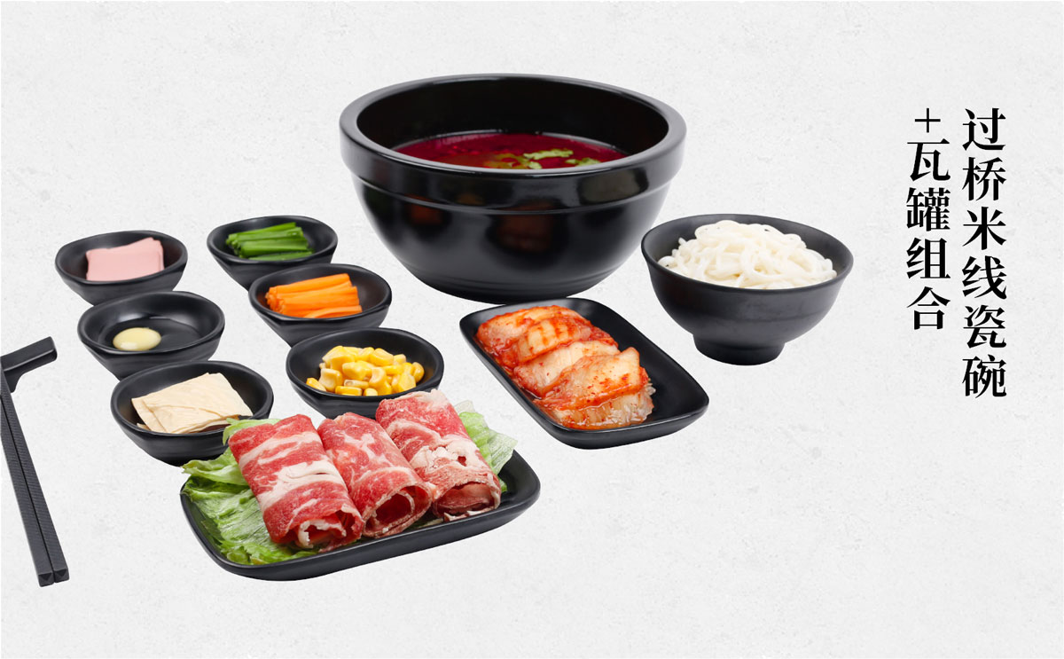 保留傳統過橋米線特色瓦罐拼盤的形式,在保證口味和品質不變的前提下增加瓷碗形式,簡化出餐形式并增加翻臺率。